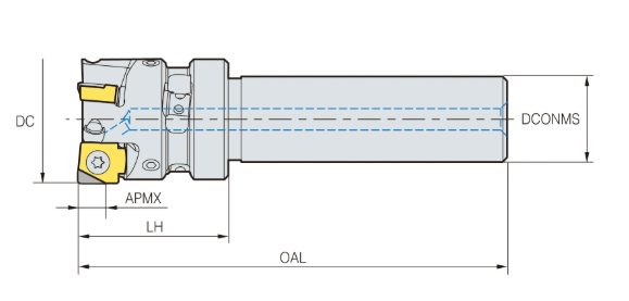 – Đài dao phay Aero Mill Mini, góc lưỡi cắt 90°, thân hợp kim nhôm