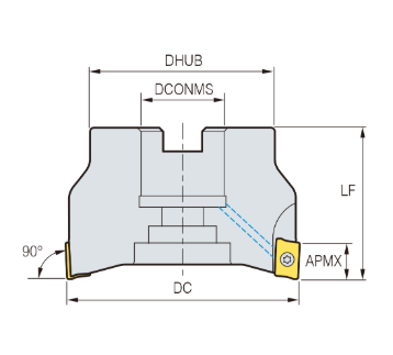– Đài dao phay Alpha Mill, góc lưỡi cắt 90°