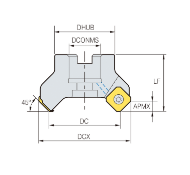 – Đài dao phay Future Mill, góc lưỡi cắt 45°.