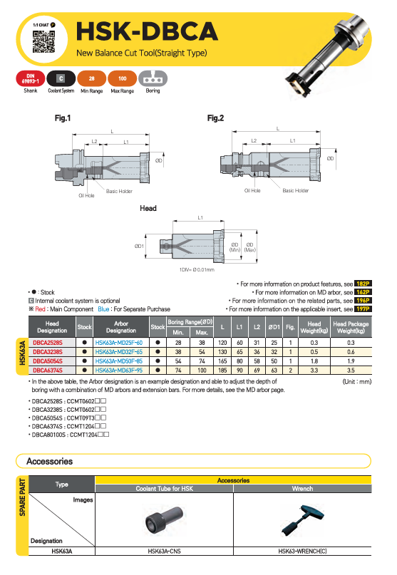 – Đầu kẹp dao doa dạng xoắn HSK-DBCA có khả năng bao phủ nhiều phạm vi doa khác nhau nhờ áp dụng cấu trúc điều chỉnh đồng thời hai chiều / một chiều bằng cartridge.