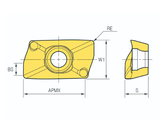 – Mảnh dao phay Alpha Mill-X với 2 lưỡi cắt góc nghiêng lớn, dùng cho gia công thông thường