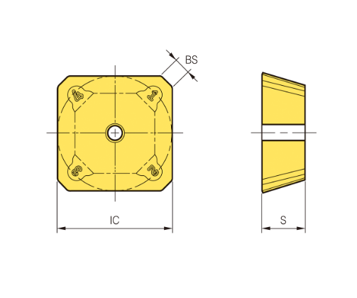 – Mảnh dao phay Mill Max hình vuông với 4 lưỡi cắt