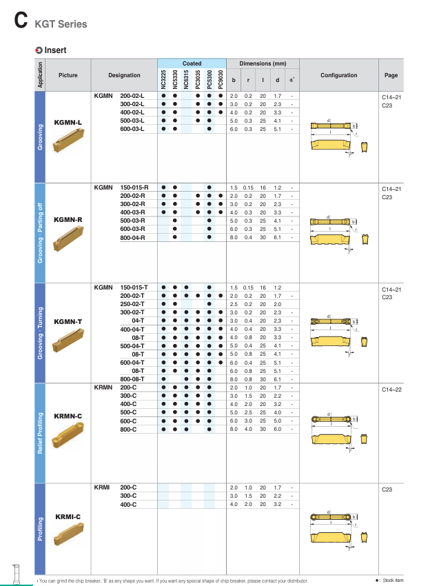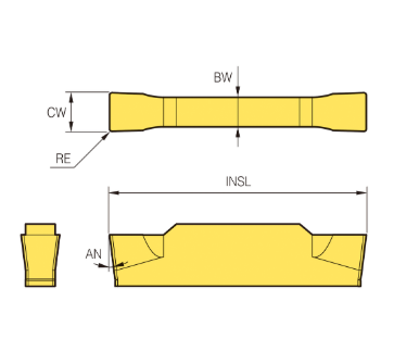 – Mảnh dao tiện cắt rãnh KGT, 2 cạnh cắt, có thể dùng cho gia công tiện và gia công cắt rãnh.