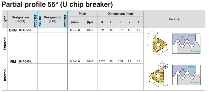 SKU: IRM-55-U Danh mục: Mảnh dao tiện ren Korloy, SẢN PHẨM KORLOY