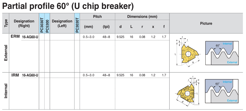 Mảnh dao tiện ren trong IRM-60-U KORLOY