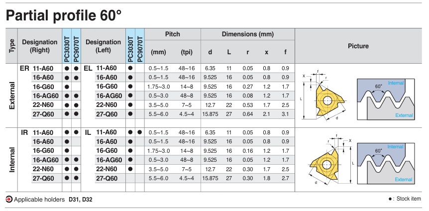 Mảnh dao tiện ren ngoài ER/L-60 KORLOY