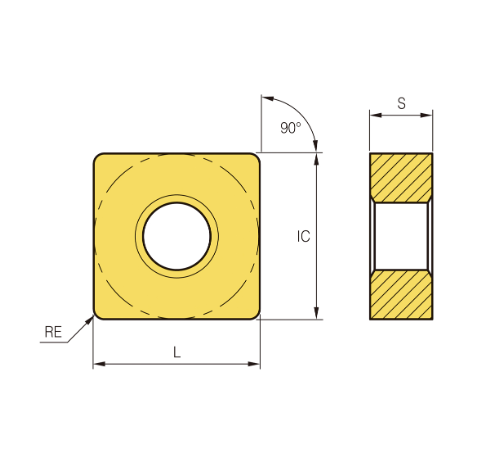 – Mảnh dao tiện vuông 90 ° Square, 4 cạnh cắt